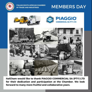 Piaggio a proud Chamber member Piaggio Commercial SA has been a Chamber member for several years now. Piaggio Commercial Apé is an Italian designed Piaggio