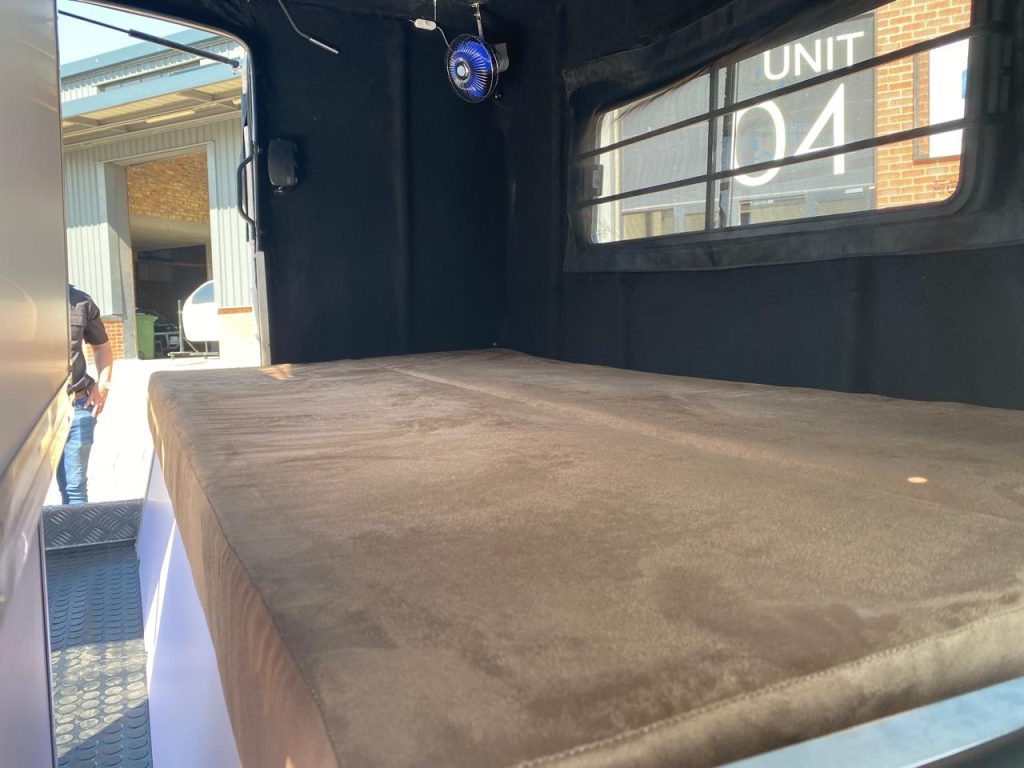 • Custom Features: Designed with comfort and functionality in mind, including a fold-down bed, built-in storage, and practical upgrades to make your adventures seamless.